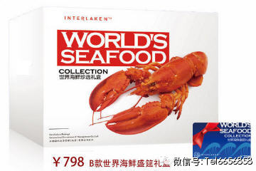 世界海鲜B款:波士顿大龙虾、冰岛红鱼、阿拉斯加真鳕切鱼、野生狭鳕切段、冰岛海参斑、欧鲽鱼、彩盒+保温箱